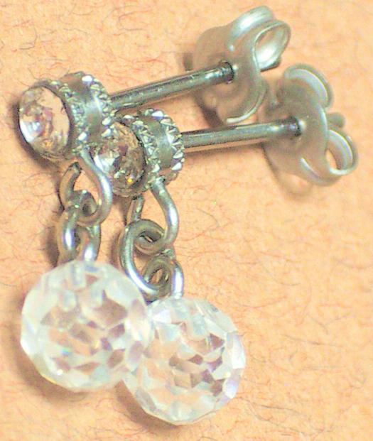 拡大しました。ピアス軸や後ろのピアスキャッチ、石を留める丸枠、丸枠の下についているわっか、わっかの下で揺れる部分の金属など金属すべて純チタン製(ピュアチタン)です。チタン以外の金属(メッキや溶接用のロウやハンダなど)は一切使っておりません。 |