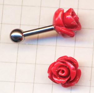 天然石風のバラのついた軟骨・耳たぶ兼用ピアス16G・14G