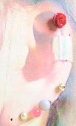 耳のイラストに装着してみました。ちょっと福耳です(笑) 白いパールが大きさ4ミリです(大きさの参考に)