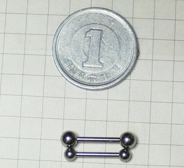 ボールをはずした状態です。BBSTはねじ式になります。ピアス穴に通していただき、再びボールを装着します。左右どちらのボールでも取り外し可能です。小さな飾りをぶらさげることもできます。かなりかわいいです(笑)