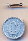付け方は、ピアス穴に軸を通していただき、ボールを装着していただきます。ボールはねじ式ですので、滅多なことでは落ちません。こちらは有効軸長(軸の長さ)8ミリとなります。