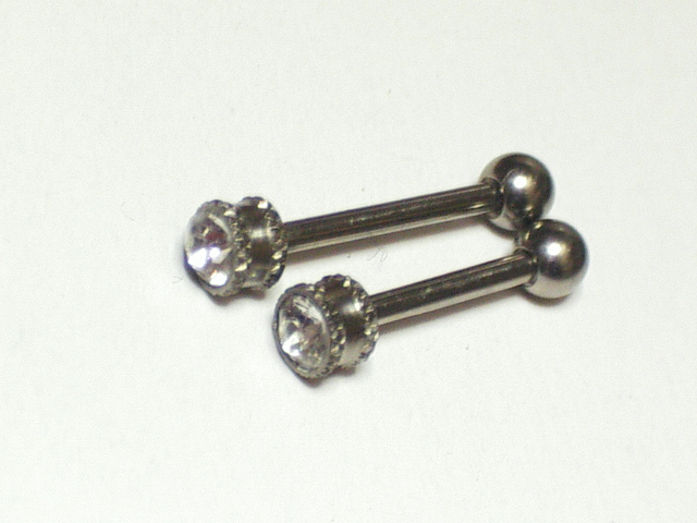 こちらは片側にクリスタルガラスがついたタイプです(クリスタルガラスはねじ式ではなく固定されています)ので、見た目は普通のピアスのようにお使いいただけます。