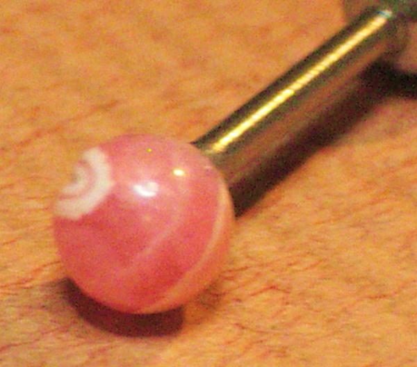 天然石一粒インカローズのついた純チタン軟骨・耳たぶ兼用ピアス18G・16G・14G