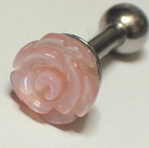 天然ピンクシェルバラの花つき純チタン製軟骨・耳たぶ兼用ピアス(18G、16G、14G)