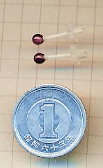 天然石ガーネットセラミックピアスです。こちらは大きさ3ミリの小さいタイプです。非金属セラミック軸の先に小さな石がつき、まるでマッチ棒のように見えます(笑)