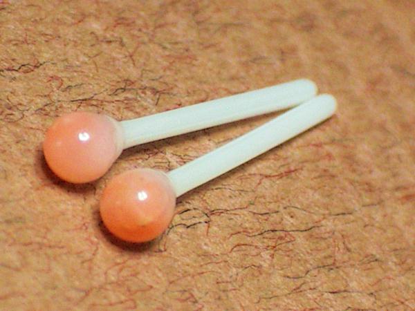 高品質天然ももいろサンゴの金属不使用マッチ棒セラミックセカンドピアス3mm