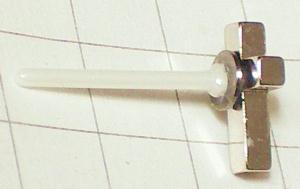 金属部分(メッキ部分)が耳たぶに触れにくいよう、軸の根元に樹脂のお皿がついています