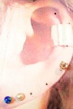耳のイラストにつけてみました。この人ちょっと福耳です(笑)一緒につけているパールの大きさは4ミリです。