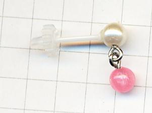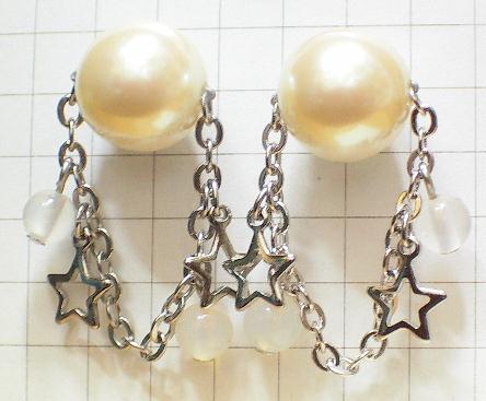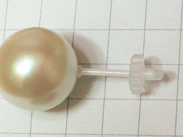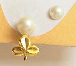 今回のさわやかパールは、パールの下にかわいい『三つ葉のクローバー』のモチーフが直結でパールにひっついています。かなりかわいいですよ(笑)クローバーの色は画像の金色のほか、銀色、茶色もございます。三つ葉のクローバーは、その3枚の葉がキリスト教の『三位一体』に例えられ、幸福の意味合いがあるそうですよ。三つ葉のクローバーはパールに直結され固定されたデザインですので、お肌に直接触れることがございません。これも、こちらのデザインのメリットですね。お肌が弱い方も、どうぞお試しになってくださいね。