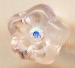 おはなはガラス製でございます(ガラスの水晶)。色はほとんど透明ですがごく淡いピンクの色合いがあります。お花の真ん中にはキラリとよく光るガラスが1粒ついています。