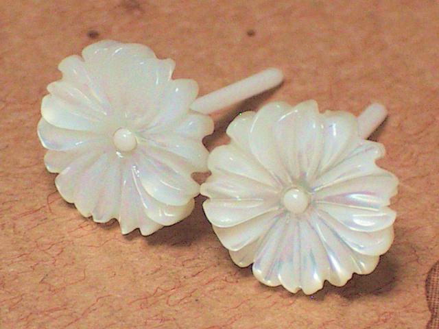 さらに詳しく&ご注文ページへピアス全体に金属を一切使用していないセラミック軸のピアスです。 白蝶貝という貝で出来ています。名前のとおり白地に淡い黄色の模様が入った、ほとんど白いお花です。ごくうすくい黄色い模様がお花の花粉のようにみえてかわいい色合いですよ。このような貝で出来たお花は、貝のいい部分を選んでも加工するために、通常の天然石などよりやや割高になります。そのぶん品質が良いのでおすすめです。プレゼントにもいいですよ(笑) |