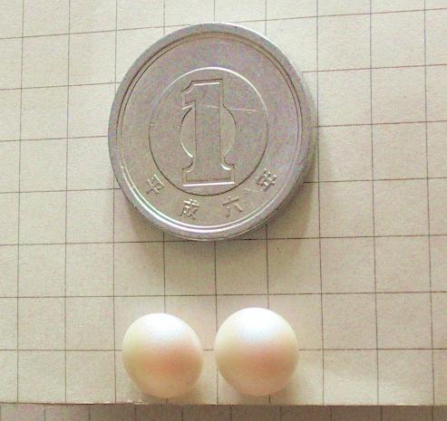 1円玉の大きさは2cmでございます(お手元の1円玉で大きさの比較ができます)こちらは大きさ5ミリです。
