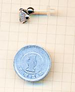 拡大しました。石が耳からやや浮くデザインですが、石が軸に対して下のほうにつきますので、浮いた感じが目立たず、良い感じでバランスが取れています。耳から落ちそうな感じで、かわいくつけていだただけますよ。