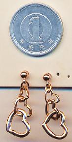 ●大中小3つのオープンハートが仲良くつながって揺れているデザインです。兄弟のようですね(笑)わりと定番っぽいデザインですが、ピンクゴールドカラーで、しかも樹脂ポストタイプの軸のピアスは探すのがなかなか大変だと思います。この機会にぜひどうぞ。