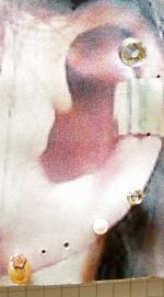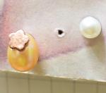 耳のイラストにつけてみました。ちょっと福耳ですね(笑)一緒についている白パールは大きさ4ミリでございます。大きさの参考にどうぞ
