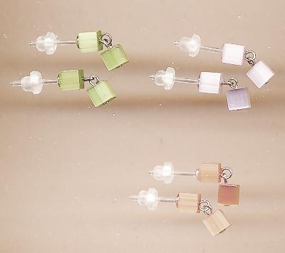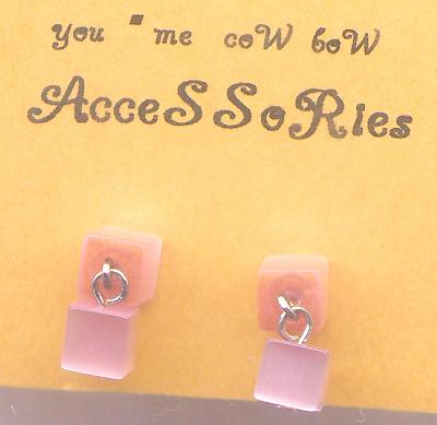 砂糖菓子みたいな四角いガラスが2つついた樹脂ピアスです。耳元でころころゆれてかわいいですよ。春っぽい色からこの秋のお色までお好みでどうぞ