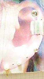 耳のイラストの上につけてみました。大きさの参考にしてみてください。ちょっと福耳ですね(笑)こちらはパールの大きさ5ミリです。一緒につけているパールの大きさは4ミリです。
