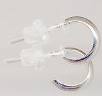 定番のG型スタッド型です。金属部分はロジウムコーティングがなされたニッケルフリー素材で、軸は樹脂です。18金のピアスでもアレルギーの反応がでて、プラチナ以外のピアスは使えない方もおられると思いますが、軸を樹脂にかえることである程度の時間でしたら使えるようになります。