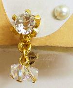 大粒の石はクリスタルガラスで、大きさ6ミリです。6本爪の下で揺れている小さなガラスもクリスタルガラスです。大きさ4ミリです。
