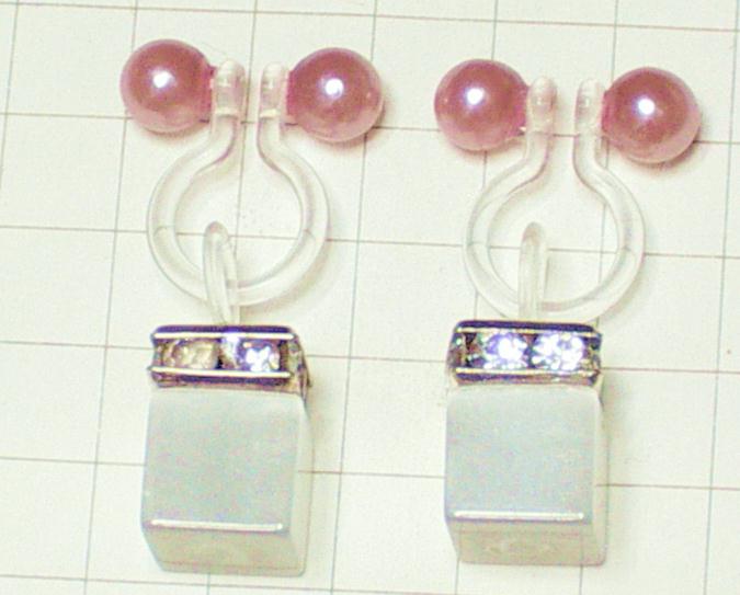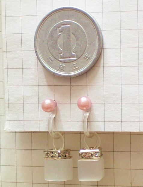 女王様キューブが揺れるパール&パールパール樹脂イヤリング(樹脂ノンホールピアス)~ピアスみたいなイヤリング