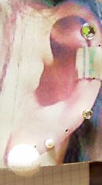 こちらは樹脂イヤリング(樹脂ノンホールピアス)ですので半透明の白色になります。遠くから見ると目立ちません。