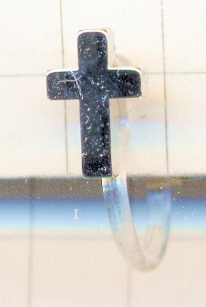 クロスの大きさはタテ8ミリxヨコ5ミリくらいです。クロスの素材はメッキとなります。銀色と金色のクロスが前後についています。