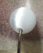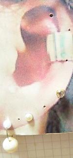 耳にはさむ部分の半透明の白い石はガラス製です。大きさは4ミリくらいです。細かいカットがたくさん入っています。見る向きによって独特の光かたをします。