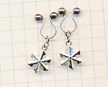 前後のボール部分を含む、耳にはさむ金具全体がメッキ不使用のステンレス製です。 さらに詳しく&ご注文ページへ