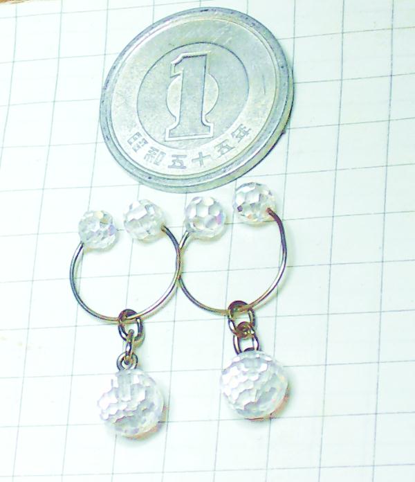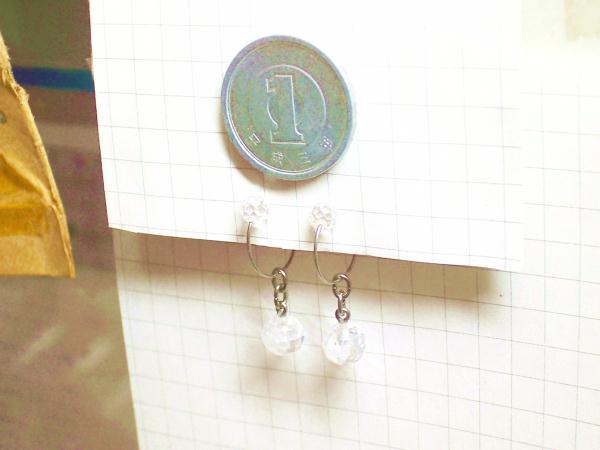イヤリング金具はわっか部分はステンレス製です。メッキは使用しておりませんので比較的安全な素材となります。わっか部分は耳に直接当たりにくいデザインとなっています。耳に直接当たる部分には透明な4ミリの石(4ミリキュービックジルコニア)がついています。