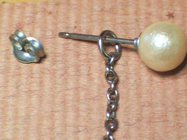 さらに詳しく&ご注文紹介ページへ特大コットンパールのついた純チタン製ピアスキャッチです。 ピアスキャッチ部分、およびパールをぶら下げている金属部分含めてすべて純チタン製です。お肌に直接触れやすい部分には真鍮(しんちゅう)や金属メッキを使用しておりません。正面から見ると耳の後ろの大粒パールが必ず見えるデザインでとってもかわいいですよ(笑) |