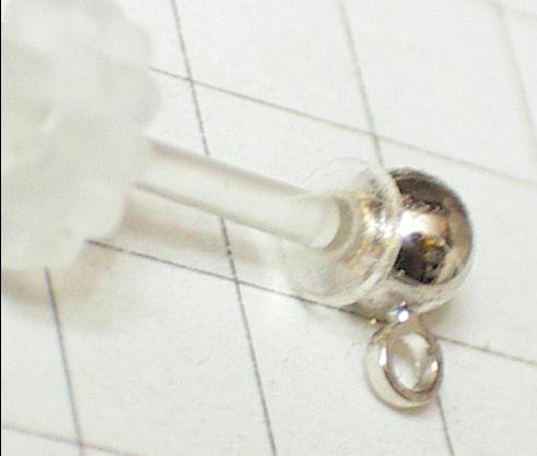 当店の樹脂ピアスは樹脂の軸部分が金属のボールの中にまで埋め込まれていますので、このタイプの通常の樹脂ポストピアスよりも丈夫に作られています。