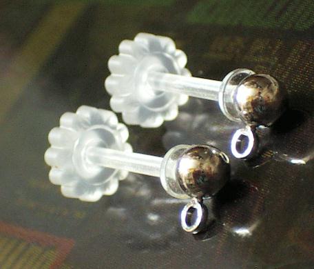 軸の太さ 約1ミリ(当店の非金属樹脂セカンドピアスよりやや太めです。)
