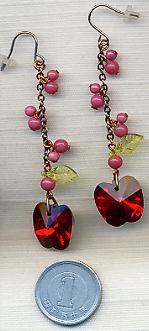 赤ワイン色の冬林檎のロングピアス(天然石ロードナイトのつぼみつき)