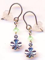 身につけるといいことありそなLuckyクローバー。こちらはガラスつきのタイプですね。ガラスのお色もいろいろございますのでお好みのお色でどうぞ。クローバーですのでグリン系が無難でおすすめです。こちらも軽くて小さくノンホールピアスが人気です