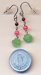 夏色天然石のスイカピアス(グリーンアベンチュリンのバラの花つき)