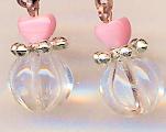 丸い玉にスジがはいったまるでかぼちゃみたいな天然石の水晶の玉の上に、ちょこんと1粒プチハートがのっています。 何だかハートの頭をした妖精のように見えませんか?笑。
