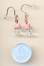天然石水晶の部分は8ミリくらいで色は透明です。その上のプチハートは4ミリくらい。 ハートの色はうすピンクのほか、うすブルーやブルー、うすグリーン、うす茶色、黒(濃いグレー)、黄色もございます。