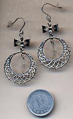 おしゃれリボンをつけた天然石水晶の雪だるまピアス