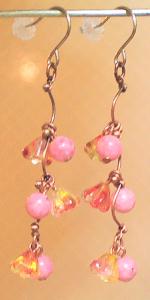 天然石インカローズとイチジク色のお花が揺れる秋色ウェーブピアス