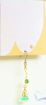 ライムボールは明るいグリーン色です。はりがね細工の上にもおそろいの薄グリーンの大粒ガラス載っています。