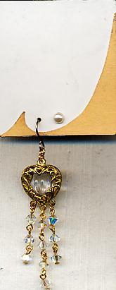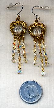 かわいらしいアンティークな透かしハートの中に水晶が入ってます。