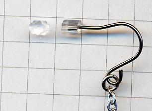 一般的なフックタイプの金具よりやや軸太めで大きめでしっかりしています。樹脂キャッチがしっかりとまる太さです。