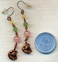 秋の夜長のお月様。秋らしい色合いの天然石のチェーンにお月様がぶら下がり、よく見るとカエルが座っています(笑) 元々カエルは「若カエル」「福カエル」など縁起物としても知られています。大切な人が無事カエル。カエルも月に無事カエル(笑)プレゼントにも喜ばれると思います。