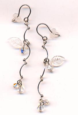 夏色は白色リーフにキラキラのガラスがぶら下がっています。海に行くときにつけたくなるピアスですね。