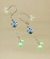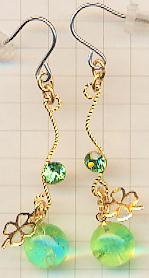 幸せを運んでくる四つ葉のクローバー。小さなガラスがタテに3個並んでいます。秋色デザインのものを集めていますが、金色や銀色でもご用意できます。良いことがありそうなピアスですね。縁起を担ぎたいあなたへ。