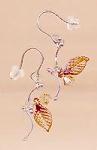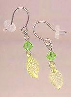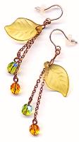 ちょっと派手な秋色リーフです。こげ茶色の晩秋の秋色リーフですが、木の実を連想させる華やかな赤や緑のガラスをまとってちょっとお洒落です。クリスマスカラーのピアスとしてもお使いいただけます。3色のガラスがゆれてかわいいですよ。