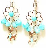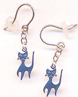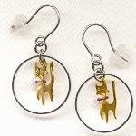 ターコイズが好きで好きでたまらない、おすましネコちゃんのピアスです。ターコイズ色のお花をつけて、おしゃれな首輪までつけてます。なんとくびわまでターコイズ色(笑)。ここまでやるかという感じですがターコイズ好きなネコちゃんの相当なこだわりが感じられるデザインですね(笑)。ターコイズはガラス製ですが見た目いい感じですよ。金属部分が金色タイプもございます。