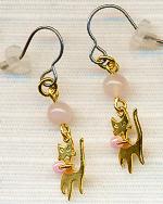 当店お馴染みのすました顔のおすましネコちゃんピアスです。まるでネコちゃんがバラをプレゼントしてくれたかのような赤バラとのセットのデザイン。かなりかわいいと思います。ちょっと気取ったネコちゃんでピアスですね(笑)