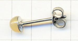 軸の長さ11ミリ、有効軸長8ミリ軸はチタンです。チタン軸とお皿部分にはメッキがかかっておりません。ファーストピアスのロングタイプとほぼ同じサイズですので耳が厚い方にもおすすめします。 軸が長めですと、どうしても石や飾りも大きくなってしまうピアスが多いのですが、こちらはこんな小さな(3ミリ)パールのついた軸の長めのピアスです。他の大きさのパールと一緒につけていただくのもいいですね。軸が長めの小さいピアス、来年以降ドンドン増えますのでこれからもよろしくお願いします。 |