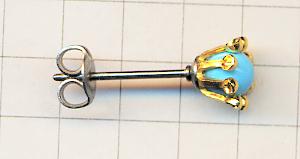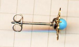 ムラの少ない綺麗な天然石ターコイズです。大きさ3ミリの小粒タイプですので職場でも使いやすいですよ。小さくてもちゃんとターコイズだとわかりますしかわいいですよ(笑) 薄い水色ですのでつけやすいですし、他の石とも合わせやすいですよ。プレゼントにもおすすめ。軸が長めですので耳の厚い方でも安心です。 |